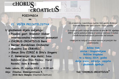 U subotu, 25. siječnja 2014. u 18:00 sati u Chleehus, Mädergutstrasse 5,…