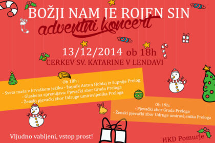 HKD Pomurje organizira adventski koncert u Lendavi. U crkvi Sv. Katarine sv.…