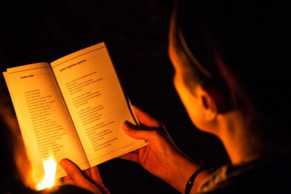 Večer započinje pozdravnim govorom utemeljitelja Drage Štambuka i njegovim čitanjem pjesme Maslina…