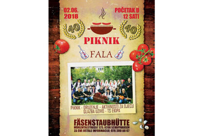 2. lipnja, SchaffhausenHKUD Fala u svojoj jubilarnoj godini organizira piknik u Schaffhausenu