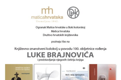 Kolokvij povodom 100. obljetnice rođenja organizira MH, Ogranak MH u Boki kotorskoj…