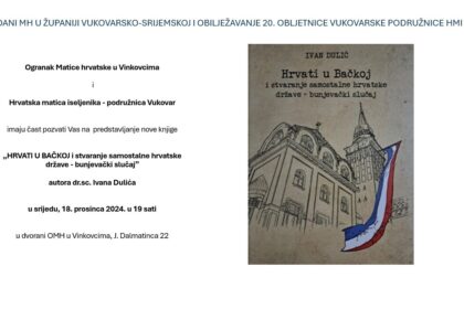 U srijedu, 18. prosinca 2024. u dvorani Ogranka Matice hrvatske u Vinkovcima