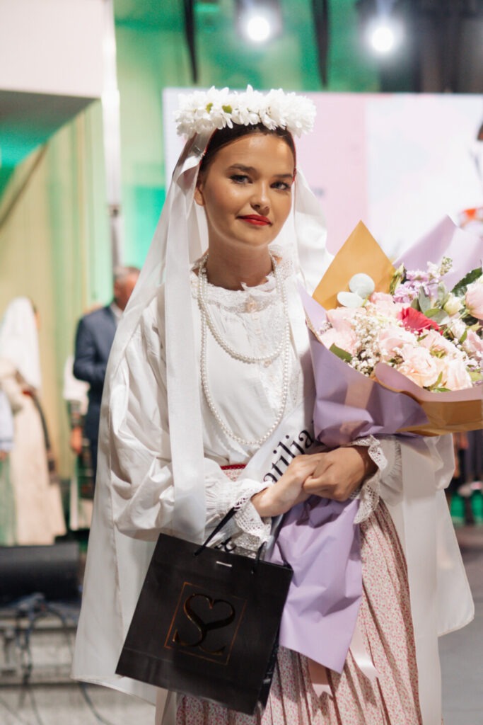 This year’s program included 16 girls from all over the world – from BiH, Argentina, Bolivia, Hungary, Germany, Norway, Romania to Slovenia and Serbia. They presented themselves in beautiful folk costumes, some of which are passed down from generation to generation. The winner, Marina Jurić, presented herself in one such 100-year-old costume from Bosanska Posavina, and a particular feature of her costume was a handmade apron. First runner-up Ivana Paštrović wore a ceremonial costume from Bunjevac, traditionally worn during the Družijanca harvest celebration, while Leona wore a costume from Ogulin, the area from where her parents derive.