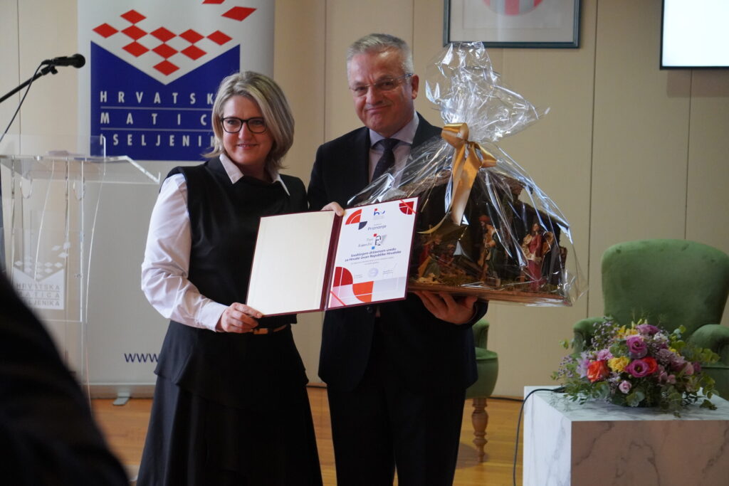 U svom izlaganju posebno se zahvalila Zvonku Milasu kojem je u ime Hrvatskog nacionalnog vijeća dodijelila priznanje Pajo Kujundžić za 2024. godinu.