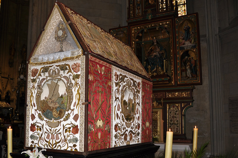 Izlaže se u Velikom tjednu. U obredima Velikog petka, ponad prikaza proroka Jone, postavlja se pokaznica s Presvetim oltarskim sakramentom te se vjernici tijekom Velike subote do večernjeg bdijenja u tišini mole. Na svetkovinu Uskrsnuća Gospodnjega, na to se mjesto postavlja medaljon s prikazom Kristova uskrsnuća. Božji grob ostaje na štovanje vjernicima sve do Bijele nedjelje kad se ponovno posprema na čuvanje u Riznicu, što je ove godine do 28. travnja.
