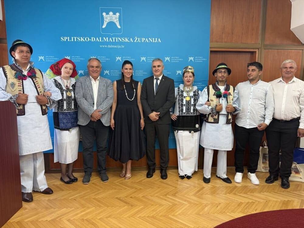U petak 27. lipnja, župan Splitsko dalmatinski Blaženko Boban i zamjenica gradonačelnika Grada Splita Matea Dorčić, u pratnji suradnika, upriličiili su prijem predstavnicima rumunjskih Hrvata u zgradi Županije. U svojim pozdravnim govorima istaknuli su doprinos Hrvatske matice iseljenika Podružnice Split i voditelja Ante Ćalete kroz sinergijsko i programsko jedinstvo s Županijom i Gradom Splitom, u realizaciji mnogobrojnih projekata, kao i predanost institucija u podupiranju projekta za Hrvate izvan Republike Hrvatske, ističući županijski projekt POVRATAK KORIJENIMA. Delegaciju rumunjskih Hrvata, predstavljali su Slobodan Ghera, predsjednik Zajedništva Hrvata iz Rumunjske, Ivan Belcea, voditelj KUD Karaševska zora, Mihaila Gheorghe, donačelnik Općine Karaševo, Mihaila Mairan, ravnatelj Doma kulture Karaševo, Logojan Petru, dopredsjednik Zajedništva Hrvata iz Rumunjske, Nicolae Paun, predsjednik lokalne organizacije i Milenca Filca, tajnica Zajedništva. Sastanku je nazočila i Marijana Botić Rogošić, tajnica Saveza KUD – ova Splitsko dalmatinske županije. Neposredno prije samog sastanka, jednako je bio srdačan i susret sa Splitsko dalmatinskim dožupanom Stipom Čogeljom.