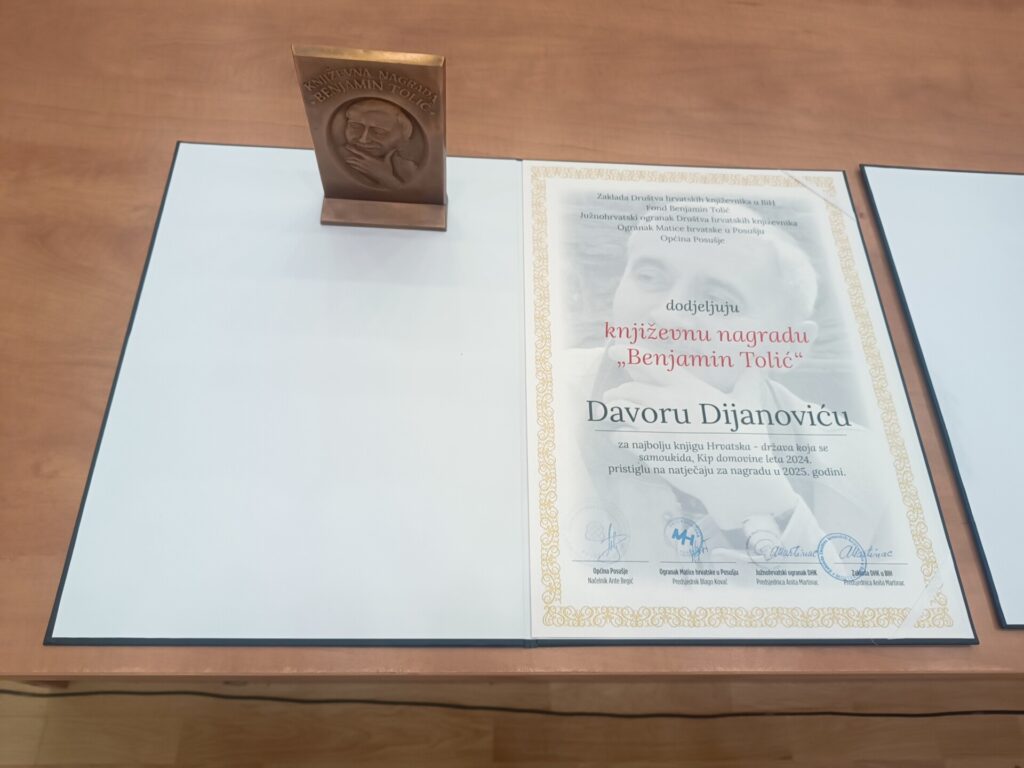 Na natječaj za Književnu nagradu ”Benjamin Tolić” ove je godine pristiglo jedanaest knjiga. Tročlani žiri – Anita Marinac, Šimun Musa i Damir Pešorda, odlučio je nagradu dodijeliti knjizi Davora Dijanovića Hrvatska – država koja se samoukida. Uz nagrađenu knjigu treba istaknuti romane Vladimira Lončarevića Godina i vječnost, Nevenke Nekić Ivan bez zemlje i Josipa Mlakića Rekvijem kao literarno iznimno vrijedna djela. Na žalost, nagradu može dobiti samo jedna knjiga. Neke knjige u manjoj ili većoj mjeri nisu udovoljavale natječajnim propozicijama.