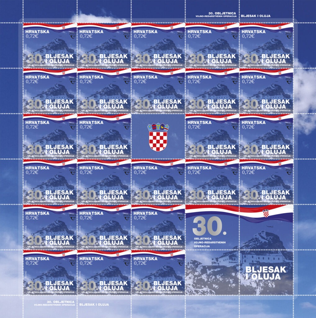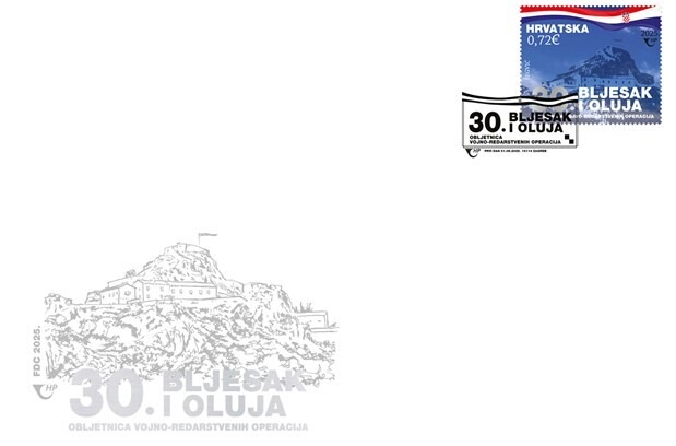 Uz prigodnu poštansku marku za 30. obljetnicu završnice Domovinskoga rata VRO „Bljeska“ i „Oluje“ tiskana je prigodna omotnica, koju od danas možete nabaviti u poštanskim uredima diljem Lijepe Naše