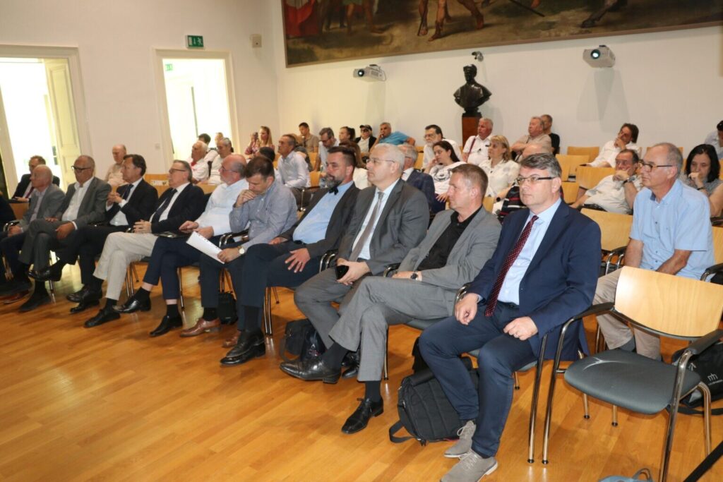Prof. dr. sc. Hrvoje Kekez s Hrvatskog katoličkog sveučilišta govorio je o zemaljskim grbovima na grbovnicama hrvatskog i slavonskog plemstva iz 17. i 18. stoljeća, a prof. dr. sc. Tomislav Galović s Filozofskog fakulteta u Zagrebu o hrvatskom šahiranom grbu u političkim i idejnim koncepcijama Pavla Rittera Vitezovića kojeg je nazvao prvih hrvatskim heraldičarom. Opisujući hrvatski grb u svom djelu Stemmatographia iz 1701. latinskim je stihovima zapisao: „Bijela i crvena boja u tvom se mijenjaju polju, divno prikazuju one našega roda kob.“