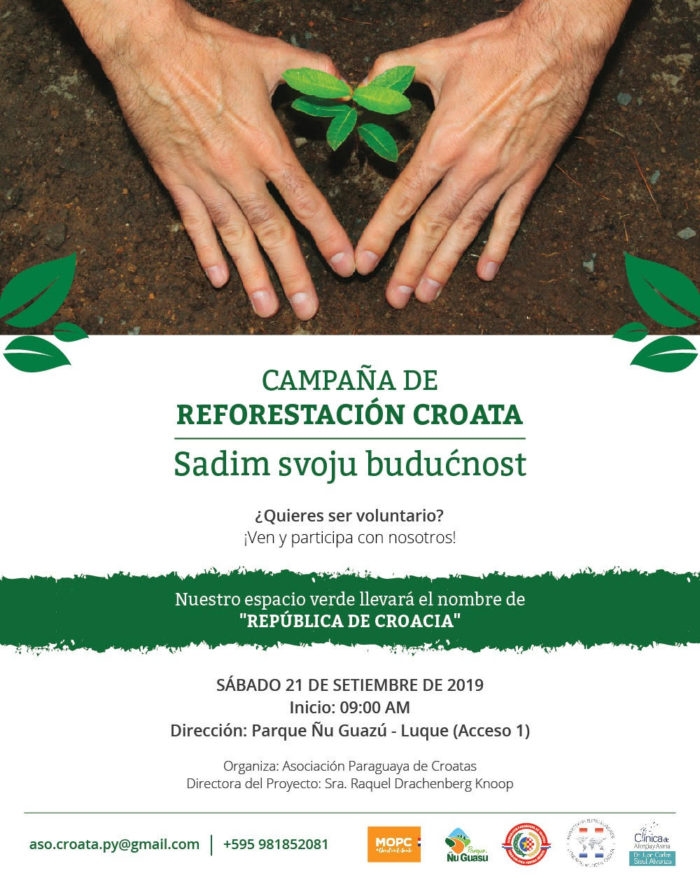 Dobivši dozvolu za pošumljavanje parka koju je izdala paragvajska Vlada, članovi Udruge Hrvata pozivaju svu djecu, mlade i odrasle da se pridruže sadnji drveća koja će se održati 21.09.2019. godine.