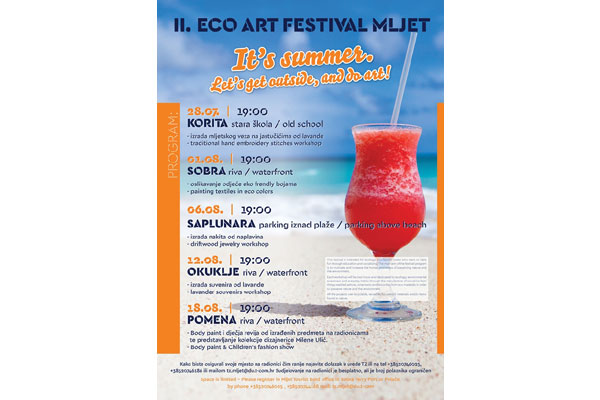 U organizaciji Turističke zajednice općine Mljet radionicom mljetskog veza u Koritima započeo je II. Eco Art festival (28.07.- 18.08.2018.)