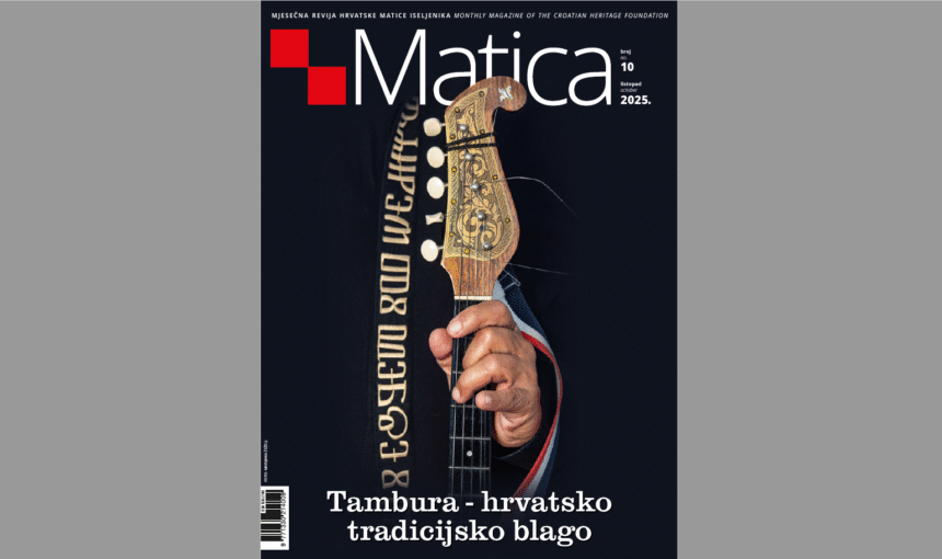 Poseban dio listopadskog broja Matice posvetili smo hrvatskom tradicijskom blagu – tamburi. Možemo s pravom reći da je tambura nacionalni brend, a na svjetskoj razini Hrvatska se ističe jedinstvenim petogodišnjim sveučilišnim studijem tambure pri zagrebačkoj Muzičkoj akademiji. Jedan od ključnih ljudi zaslužnih za uvođenje toga značajnoga diplomskog studija je Siniša Leopold, dirigent, skladatelj i pedagoški vizionar s kojim smo razgovarali u ovom broju Matice. Osim toga, posjetili smo poseban Muzej tambure u Slavonskom Brodu, ali i razgovarali s Hrvaticom iz Argentine koja je s obitelji doselila u mjesto pokraj Zagreba. Tu je i sjajan feljton Marijana Lipovca povodom 200 godina od rođenja Eugena Kvaternika – prvomučenika samostalne Hrvatske, a donosimo i dvije reportaže – prva iz Novske, s konferencije G2 koja je okupila poslovne ljude hrvatskog porijekla iz cijelog svijeta, a drugu iz Italije gdje su se održala dva važna događaja koja okupljaju tamošnje Hrvate, a o čemu nam je pisala urednica Fenix Magazina, Marijana Dokoza.