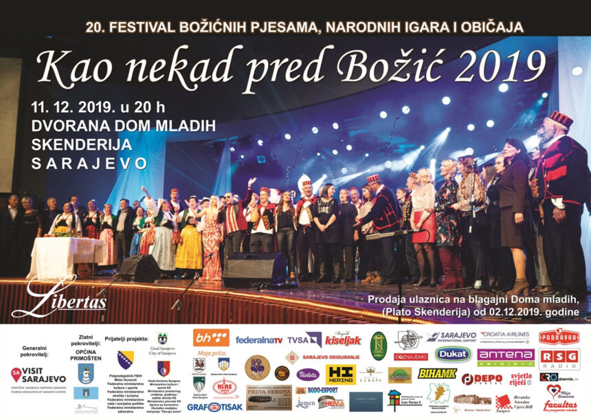 Dvadeseti, jubilarni festival božićnih pjesama, narodnih igara i običaja ‘Kao nekad pred Božić 2019“ održat će se 11. prosinca, s početkom u 20:00 sati, u dvorani Dom mladih, Skenderija u Sarajevu.