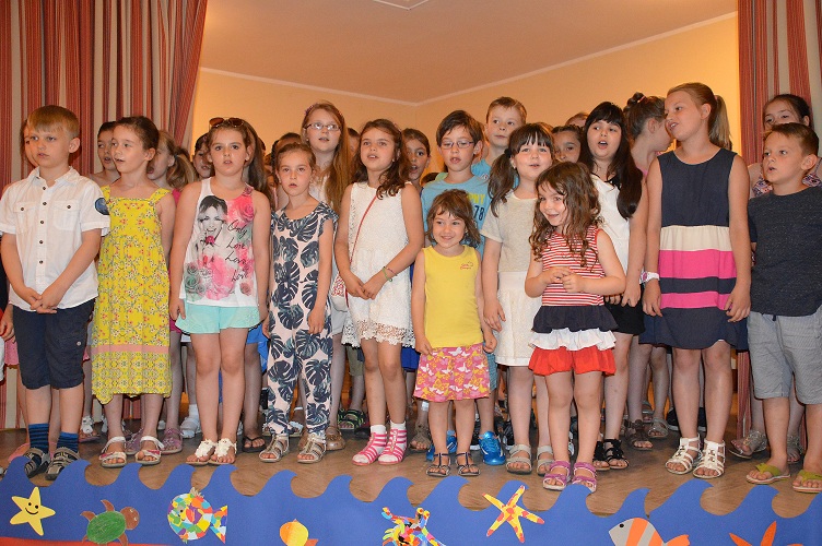 Učiteljice Rachela Fay, koordinatorica i Marina Maganić Buljan te učitelj Mladen Balent izvrsno su s djecom pripremili završnu priredbu. Bilo je veselo i raspjevano. A bilo je i kolača, sokova i kave koje su priredile vrijedne mame koje je okupilo Društvo prijatelja HN.