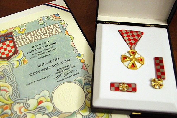 Odličje je dodijeljeno istaknutim mađarskim državljanima, uglednim intelektualcima, koji su svojim aktivnostima i djelom bitno pridonijeli političkom, kulturnom i znanstvenom povezivanju prijateljskih država i naroda, Republike Hrvatske i Mađarske, odnosno Hrvata i Mađara. Odlukom hrvatske predsjednice Redom Danice Hrvatske s likom Marka Marulića odlikovan je akademik István Lőkös, a Redom hrvatskog pletera odlikovani su likovna umjetnica Jelena Veszely, zastupnik Mađarskoga parlamenta Mátyás Firtl, bivši lektor Sveučilišta u Sambotelu prof. dr. Károly Gadányi, veleposlanik János Hóvári i teoretičar književnosti dr. sc. Csaba Kiss Gy.