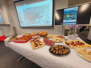 Večer je završila pjevanjem dalmatinskih pjesama uz pratnju gitara i degustacijom dalmatinskih specijaliteta: splitske torte, imotskih rafiola, pršuta, sira, maslina, fritula, ušećerenih badema, suhih smokvi… Bio je to susret pun mirisa i okusa Dalmacije – od srca hvala svima koji su mu na bilo koji način pridonijeli!