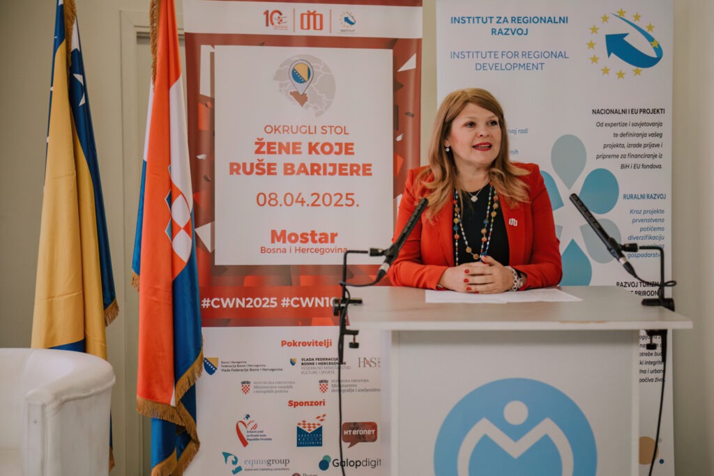 Okrugli stol u Mostaru otvorila je prof. dr. sc. Mirjana Milićević,  pročelnica studija Turizam i zaštita okoliša Sveučilišta u Mostaru. „Žene se susreću s različitim izazovima bez obzira na dob, obrazovanje ili na status. Tema koju ovdje spominjemo je vrlo česta, a to je da su žene prisutne u svim sektorima, ali ne involvira ih se u društvo onoliko koliko bi to trebalo. Upravo je ta spoznaja povezala žene zajedničkog podrijetla u organizaciji Mreža žena hrvatske dijaspore sa sjedištem u Torontu i Instituta za regionalni razvoj u Mostaru, koje rade na prepoznavanju i unaprjeđenju statusa žene uz obrazovanje i potporu u razvoju biznisa, uz mentorstvo, konzalting, ali i uz međusobni razvoj, razumijevanje te poticanje na ustrajnost“, rekla je prof. dr. sc. Milićević. Osvrnula se i na situaciju u kojoj se nalaze žene u BiH.