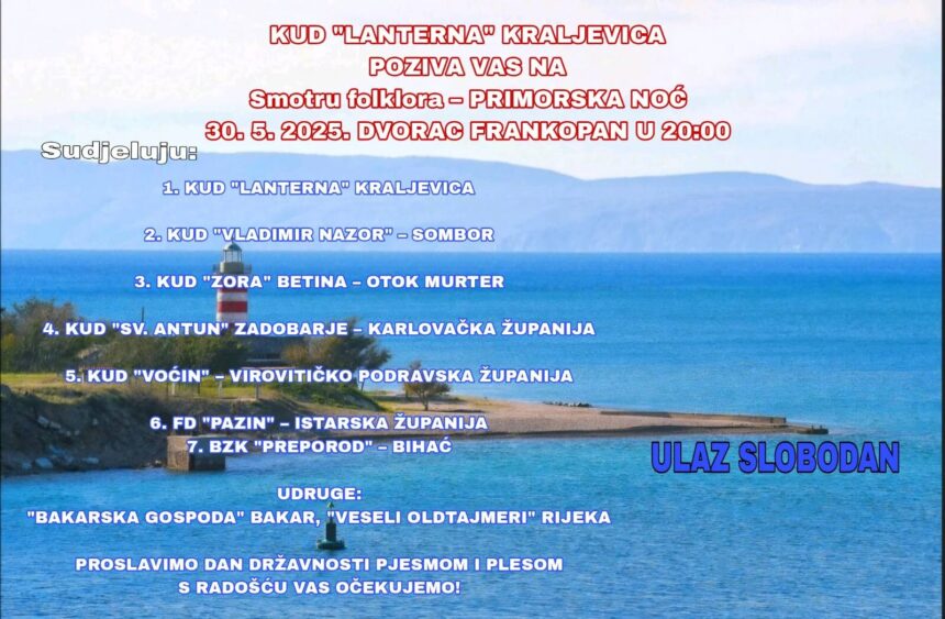 U organizaciji KUD-a Lanterna, a uz podršku ureda riječke podružnice Hrvatske matice iseljenika, na Dan državnosti HKUD Vladimir Nazor iz Sombora sudjelovat će na smotri folklora u Frankopanskom dvorcu u Kraljevici.