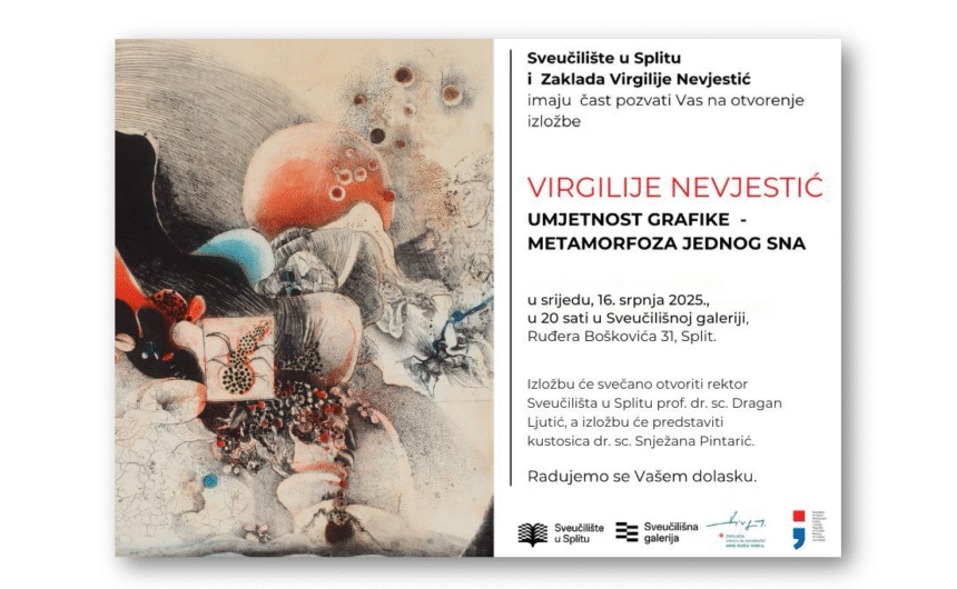 U povodu 90. obljetnice rođenja istaknutog hrvatskog umjetnika Virgilija Nevjestića, Sveučilište u Splitu i Zaklada Virgilije Nevjestić, u suradnji s brojnim partnerima, organiziraju dva iznimna kulturna događaja posvećena njegovom stvaralaštvu i umjetničkom nasljeđu.