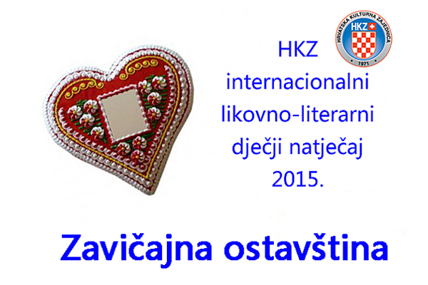 HKZ u Švicarskoj organizira međunarodni likovno – literarni natječaj za hrvatsku djecu širom svijeta “Zavičajna ostavština”. Rok za slanje likovnih, literarnih i poetskih radova je 8. ožujka 2015. Proglašenje pobjednika bit će u ožujku ove godine. Svi nagrađeni radovi biti će objavljeni na internetskoj stranici Zajednice i u glasilu Društvene obavijesti, a dodjela priznanja bit će organizirana u Zagrebu