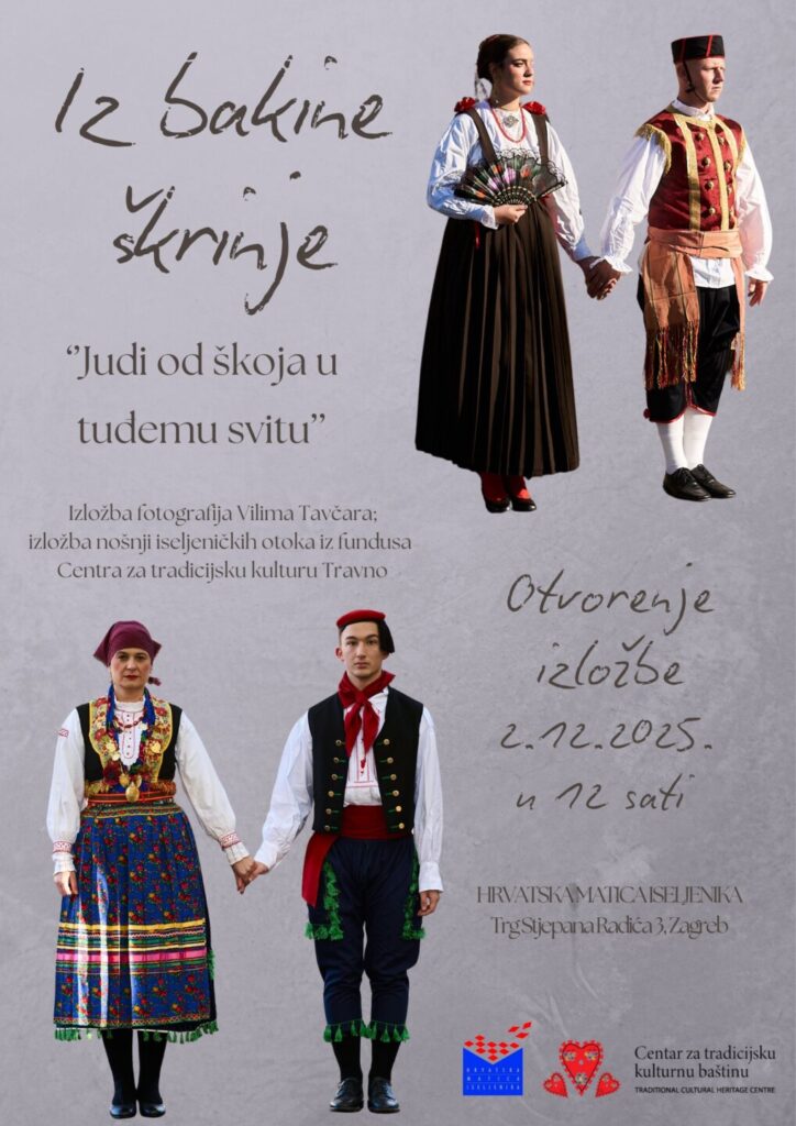 Izložba „Iz bakine škrinje – Judi od škoja u tuđemu svitu“ otvara se 2. prosinca 2025. u Hrvatskoj matici iseljenika, Trg Stjepana Radića 3, s početkom u 12 sati.