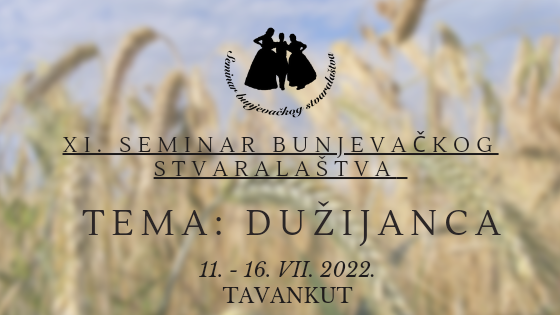U Tavankutu ove godine HKPD „Matija Gubec“ Tavankut https://web.facebook.com/hkpd.matijagubec/?_rdc=1&_rdr u Donjem Tavankutu na temu Dužijance, od 11.- 16. srpnja, organizira jedanaesti Seminar bunjevačkog stvaralaštva . Voditelj je Ivica Dulić.