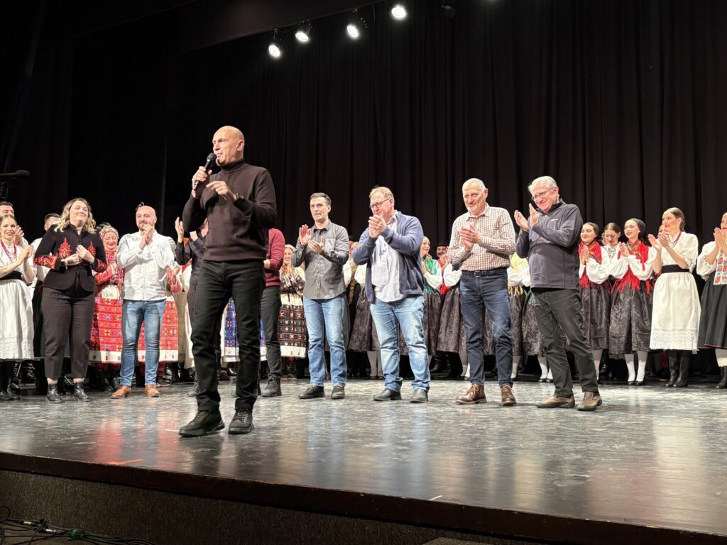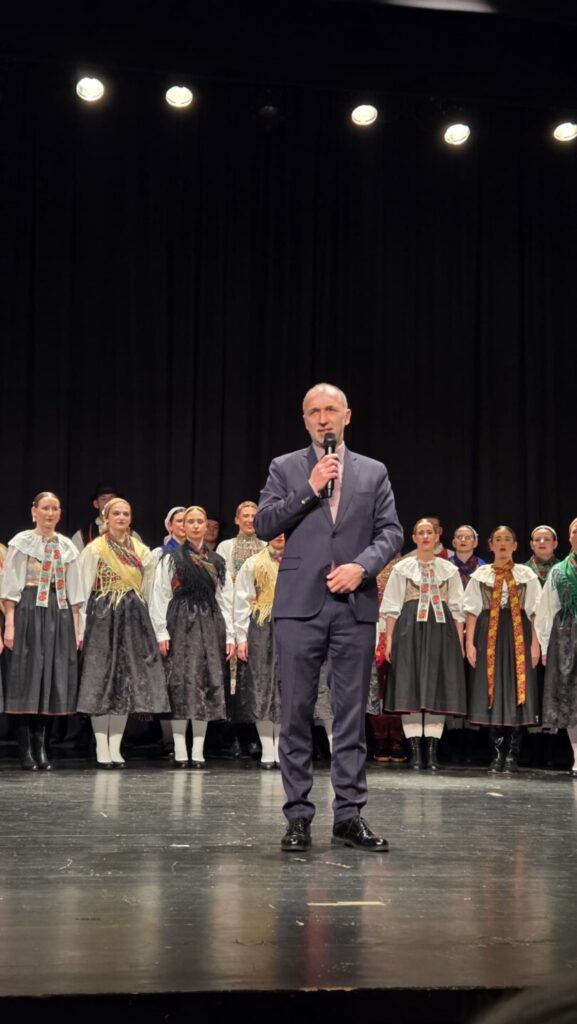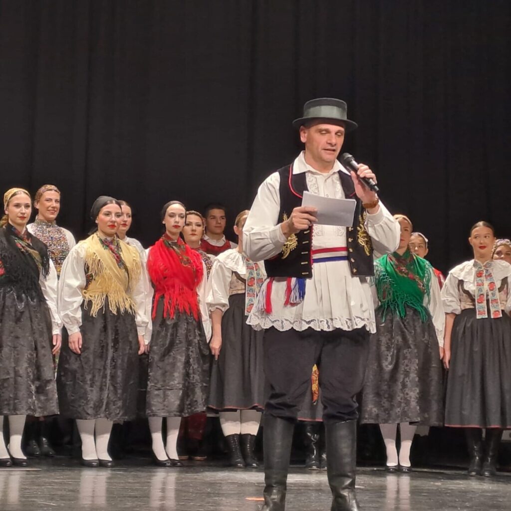 „Škola folklora projekt je koji traje već pedeset godina, a više od trideset godina provodi se u organizaciji HMI-ja. Kroz to vrijeme postala je trajna institucija znanja, susreta i prijenosa baštine – mjesto gdje se ne uče samo koraci i melodije, nego se oblikuje svijest o tome tko smo i odakle dolazimo. Zahvaljujem voditelju Škole folklora Andriji Ivančanu, koji je ujedno i voditelj plesnog programa, voditelju tamburaškog programa Tiboru Bünu, kao i voditelju programa tradicijskih glazbala Vjekoslavu Martiniću. Ponosni smo na našu voditeljicu Odjela za kulturu Luciju Starčević, koja toliko predano koordinira folklorne i druge kulturne projekte. Hvala svim predavačima, suradnicima i organizatorima koji su svojim predanim radom omogućili da ovaj dugogodišnji program traje, raste i ostaje prepoznatljiv. Posebno priznanje upućujem vama – polaznicima Škole folklora. Vi ste nositelji baštine koja se ne čuva u vitrini, nego živi na pozornici, u zajednici i u srcu. Vi pokazujete da folklor nije prošlost, nego trajna vrijednost hrvatskog identiteta – u domovini i izvan nje“, istaknuo je u svom govoru ravnatelj Milas.