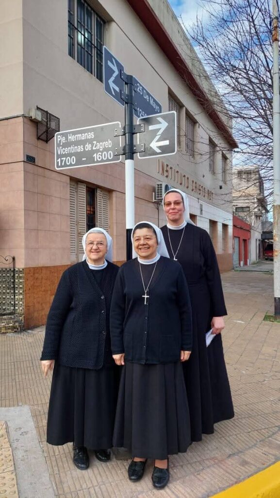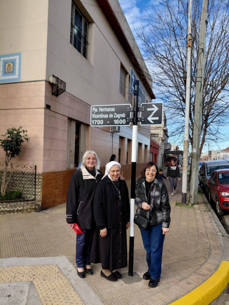 U predgrađu Dock Sud, gdje žive hrvatske časne sestre, održana je ceremonija prilikom koje je otkriven ulični znak s natpisom „Pje. (Pasaje) Hermanas Vicentinas de Zagreb“, vidi se u videu objavljenom u nedjelju na Facebook stranici tog reda.
