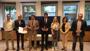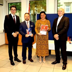 Dodjeli Večernjakove domovnice u Stuttgartu su nazočili zamjenik ravnatelja Hrvatske matice iseljenika Ivan Tepeš i voditeljica Odjela za marketing Matice Ivana Rora.